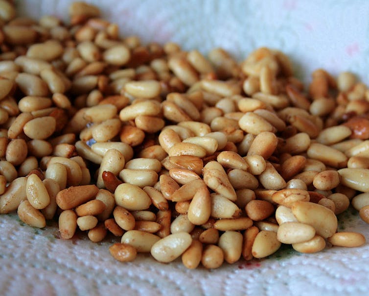 來自中國的朝鮮松(Pinus koraiensis)代表了澳大利亞超市中發現的松子的主要來源。這些松子通常是飽滿的,水滴狀的種子。相比之下,作為歐洲菜的主食的歐洲松樹種子(P. pinea)更長,並且比中國堅果看起來魚雷形。